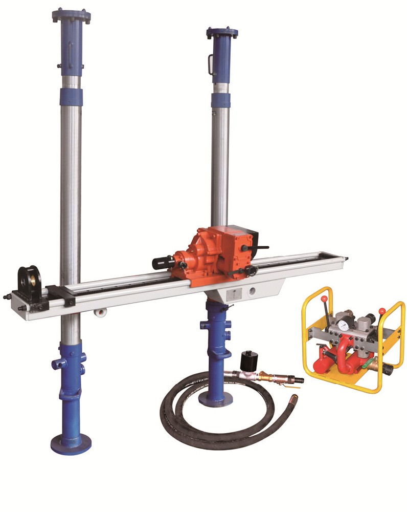 一般礦井在掘進前都要進行超前探放水,利用氣動架柱鉆機等探水設備打幾十米甚至一百米的探水孔,根據鉆頭的推進速度、巖屑成分等地質資料,初步斷定巷道周圍的水質水量,因此氣動架柱鉆機是預防突水、涌水等災害的發生主要工具。